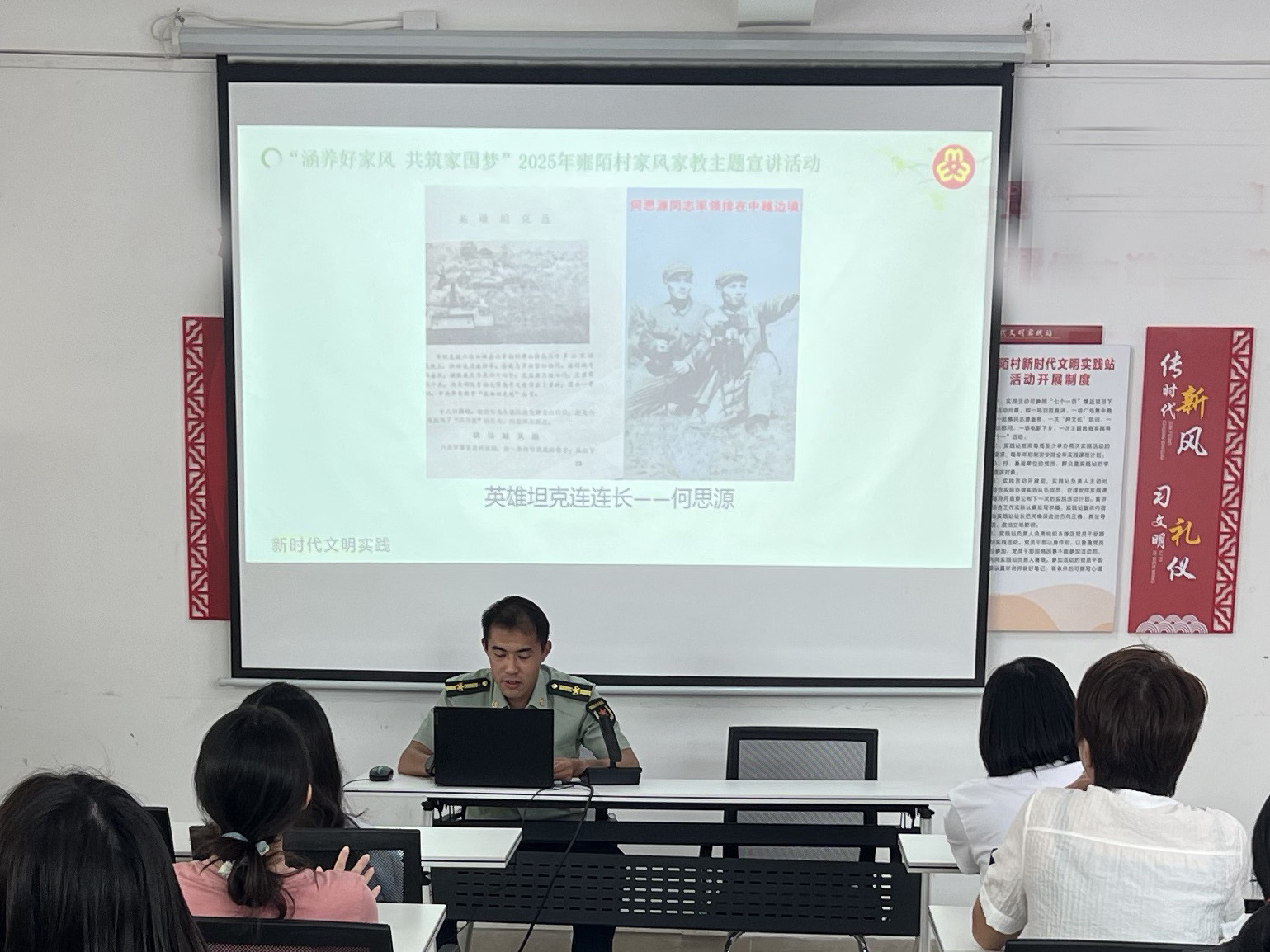 (通讯员:何家鑫)5月16日,中山市三乡镇基干民兵、退役军人谭泽豪走进雍陌村新时代文明实践站,在“涵养好家风,共筑家国梦”主题宣讲活动中,深情讲述了中山抗战英雄的家风故事,为现场家长和孩子们带来一堂生动的爱国主义教育课。
